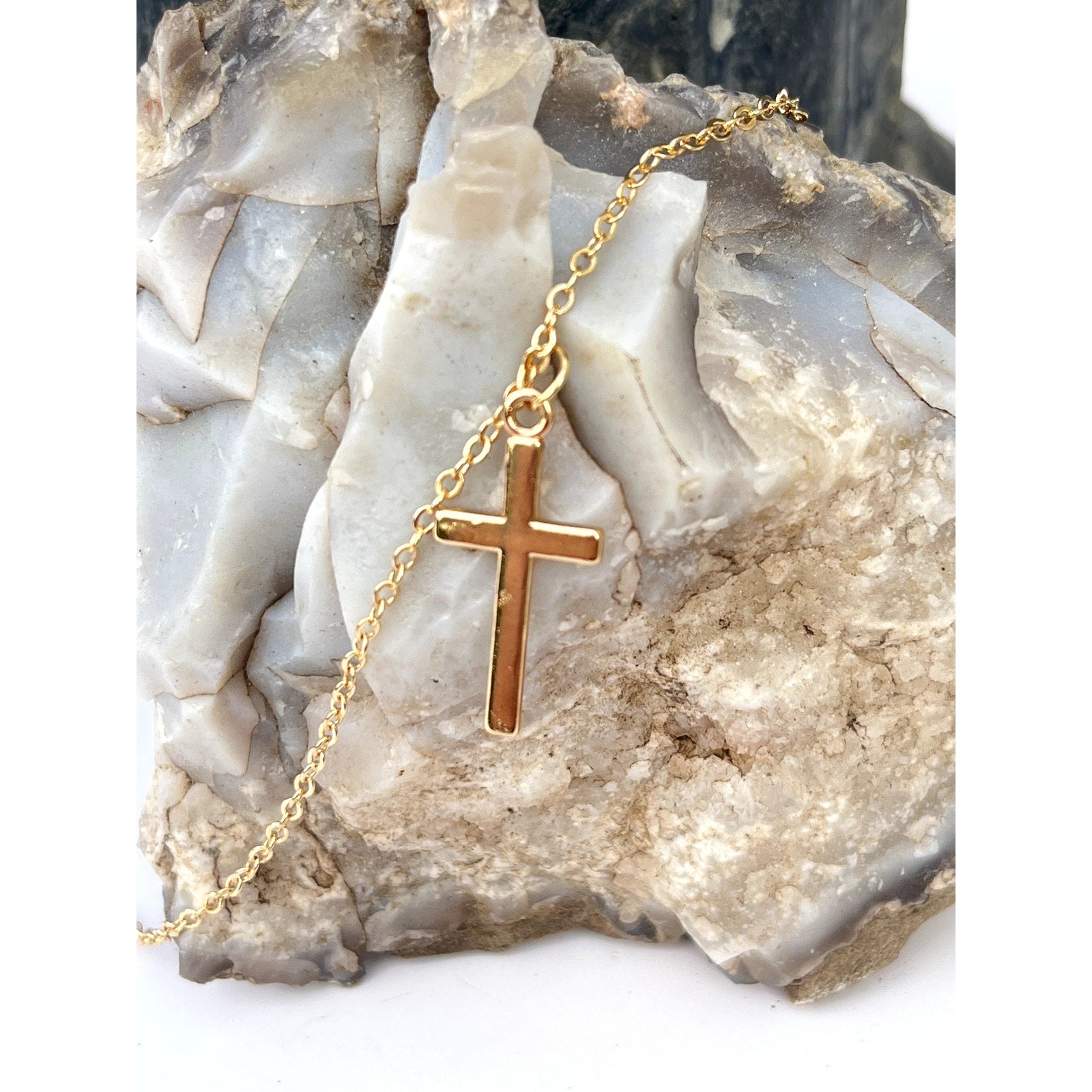 This beautiful gold cross necklace is the perfect addition to any jewelry collection.